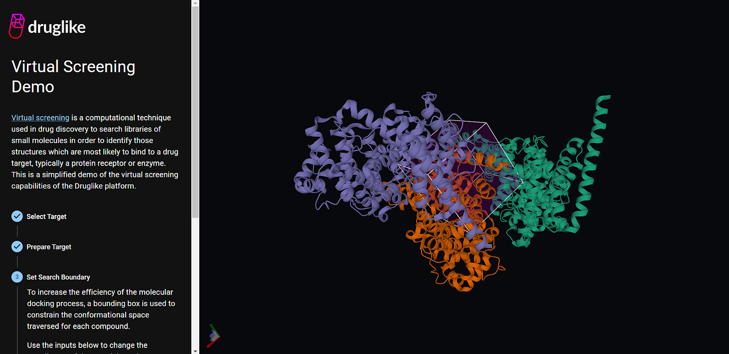 Druglike의 목표는 virtual screening에 대한 접근을 다음과 같은 2가지 기능으로 통해 민주화하는 것이다.
